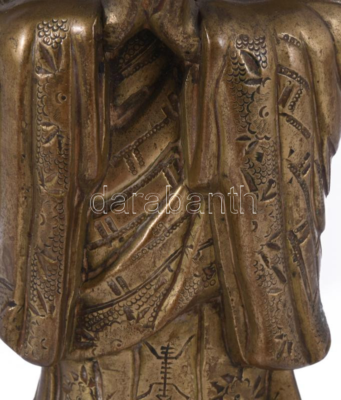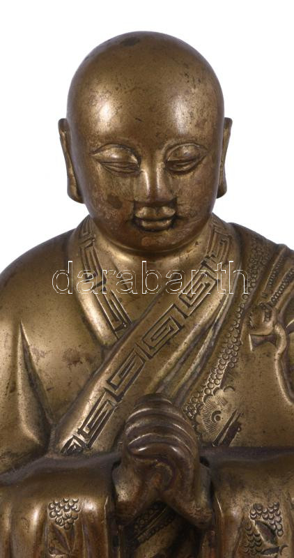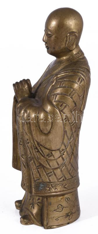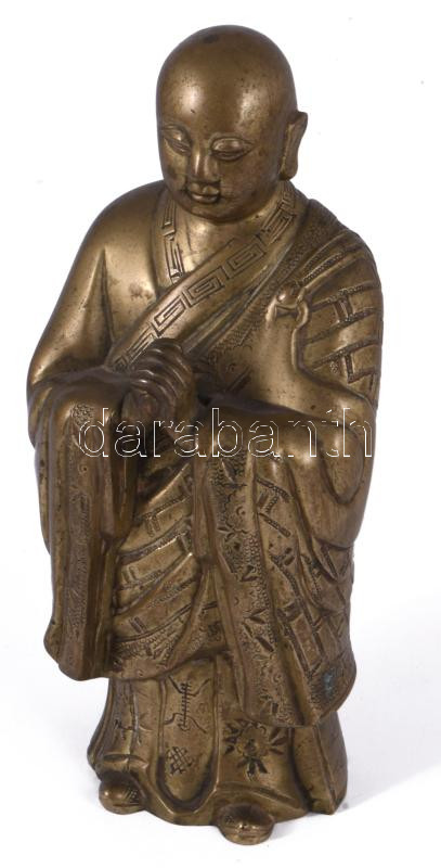 Kínai buddhista szerzetes szobra. Kína. XIX. sz. vége, finoman megmunkált, öntött sárgaréz. 20 cm