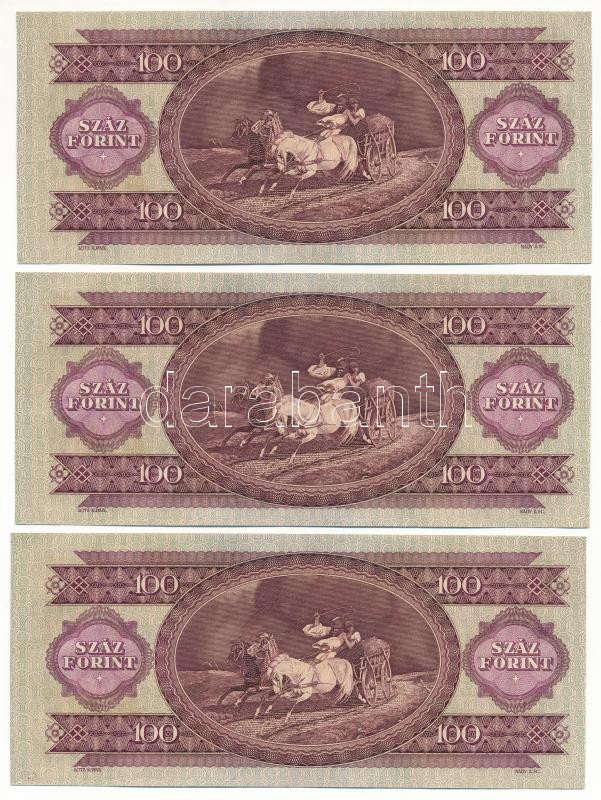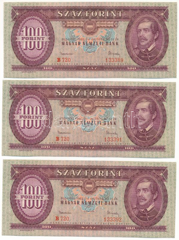 1962. 100Ft (3x) sorszámkövető és egyugrásos sorszámkövető "B 720 133389, B 720 133391 - B 720 133392" T:AU hullámos papír