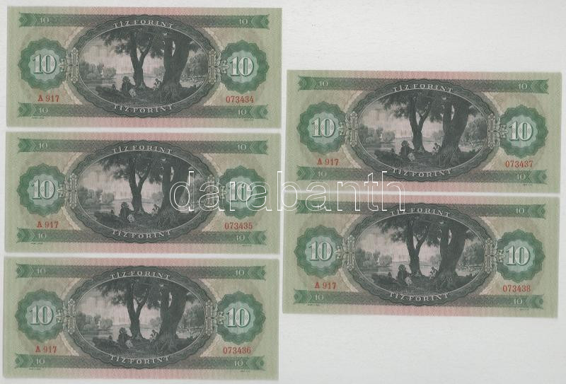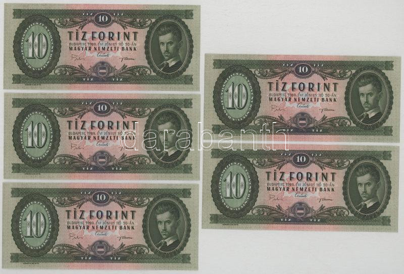 1969. 10Ft (4x) sorszámkövetők "A 917 073434 - A 917 073438" T:AU hullámos papír