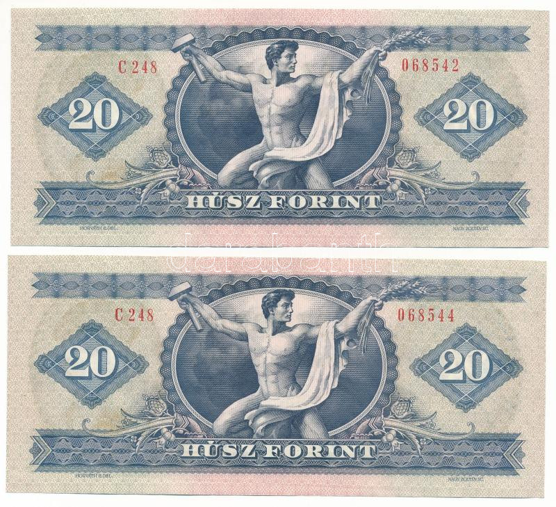 1975. 20Ft (2x) egyugrásos sorszámkövetők "C 248 068542, C 248 068544" T:XF, egyhajtásosak, hullámos papír