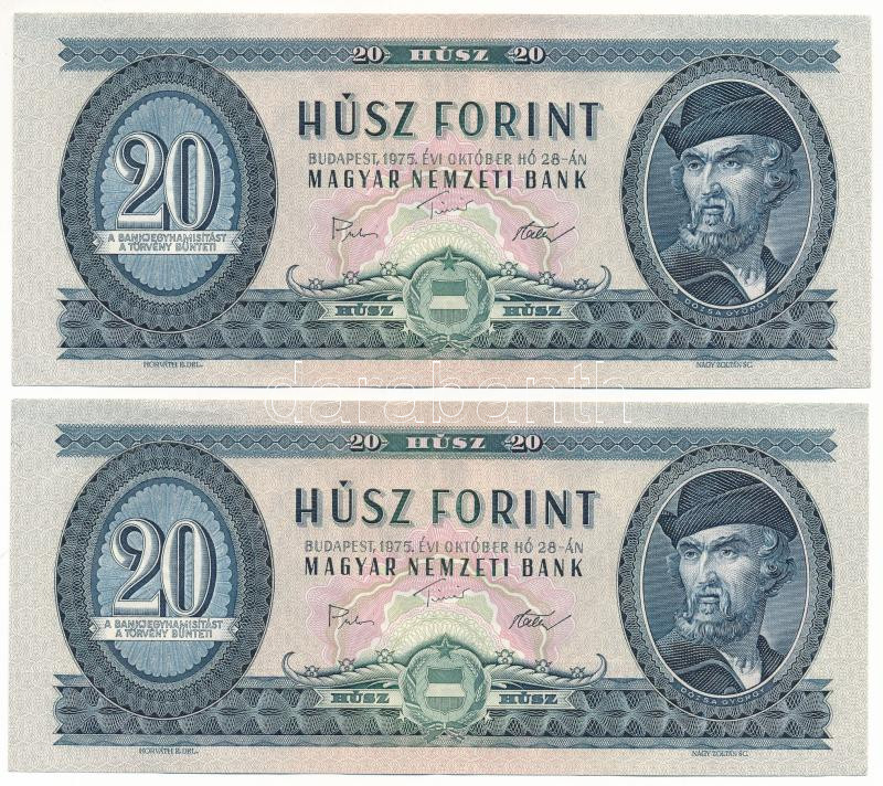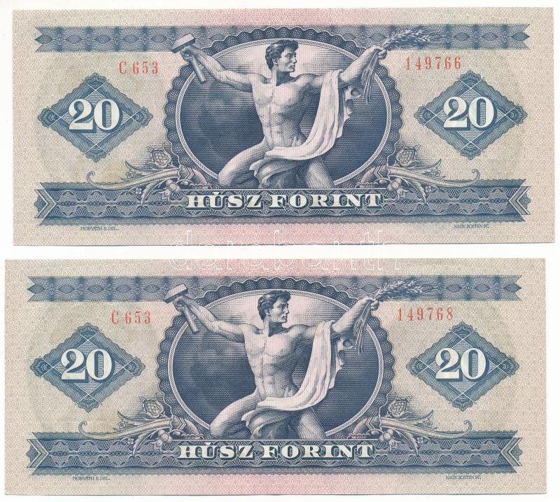1975. 20Ft (2x) egyugrásos sorszámkövetők "C 653 149766, C 653 149768" T:XF