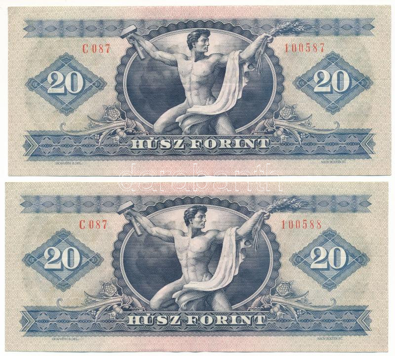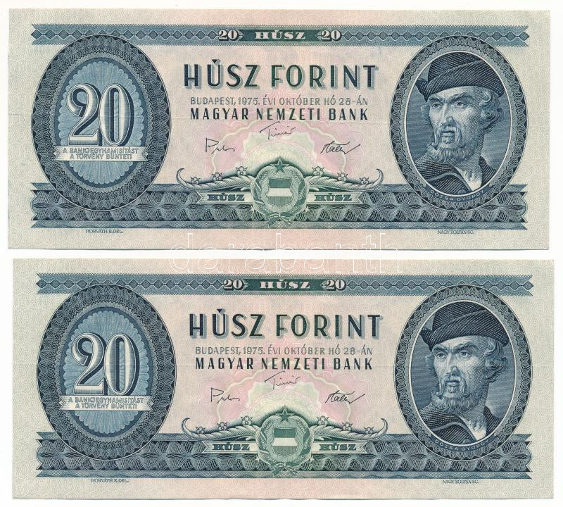 1975. 20Ft (2x) sorszámkövetők "C 087 100587 - C 087 100588" T:F szép papír
