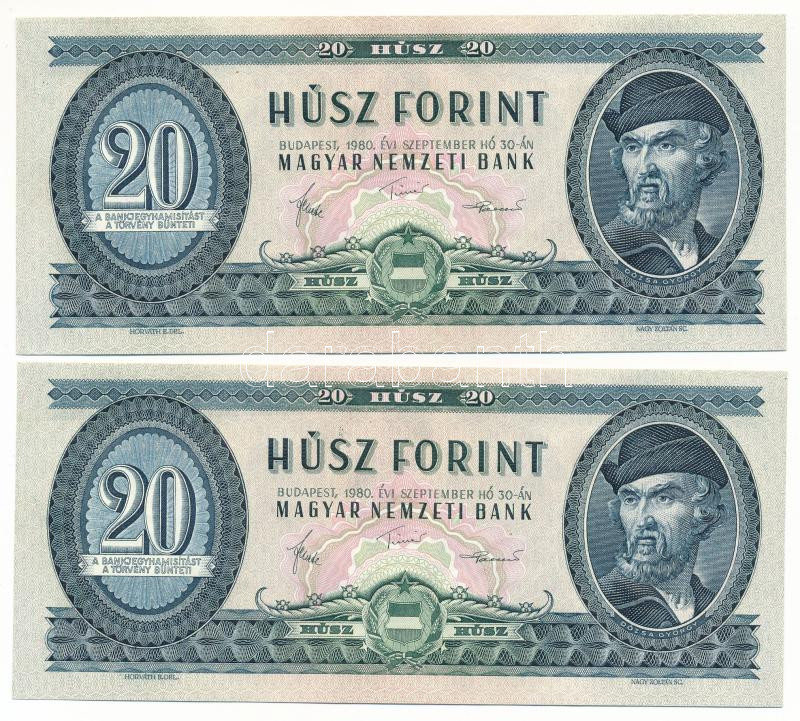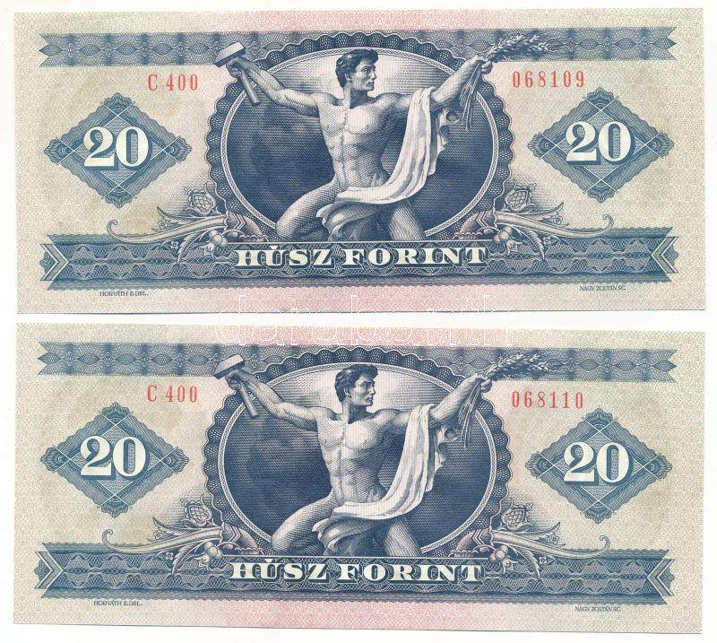 1975. 20Ft (2x) sorszámkövetők "C 400 068109 - C 400 068110" T:AU hullámos papír