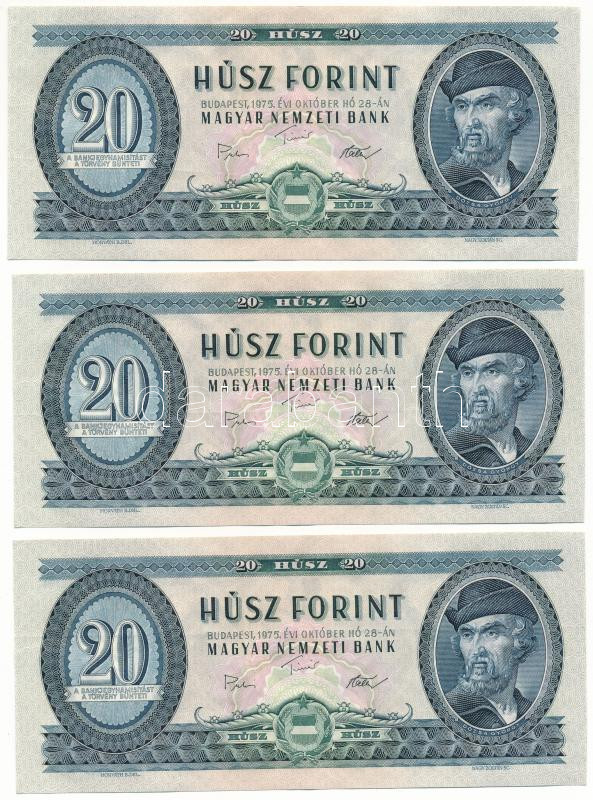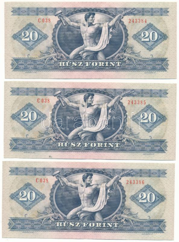 1975. 20Ft (3x) sorszámkövetők "C 038 243384 - C 038 243386" T:AU hullámos papír