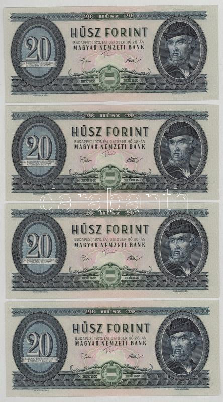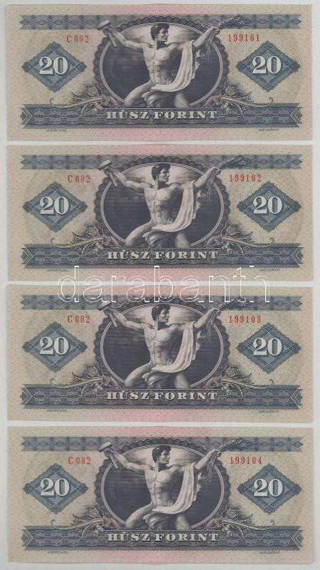 1975. 20Ft (4x) sorszámkövetők "C 002 199101 - C 002 199104" T:XF, egyhajtásosak, hullámos papír