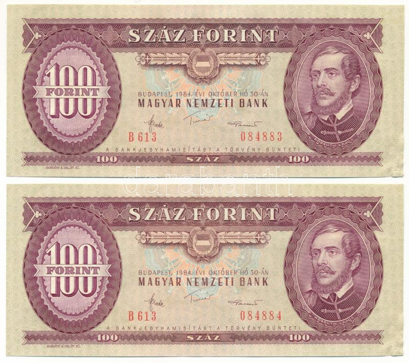 1984. 100Ft (2x) sorszámkövetők "B 613 084883 - B 613 084884" T:AU hullámos papír, sarokhajlás
