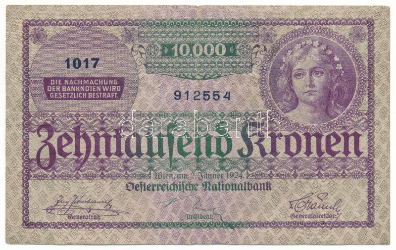 Austria 1924. 10.000 Kronen "1017 912554" C:F