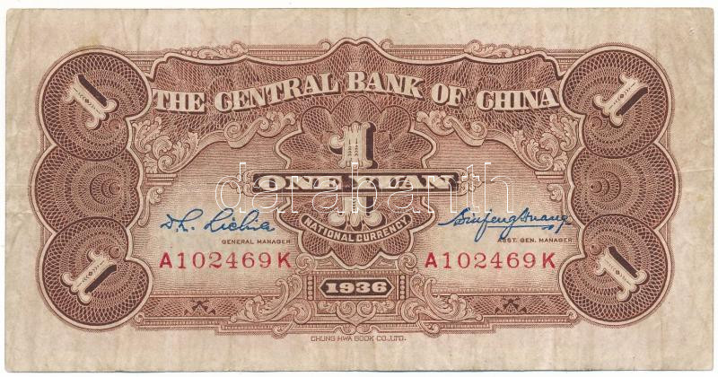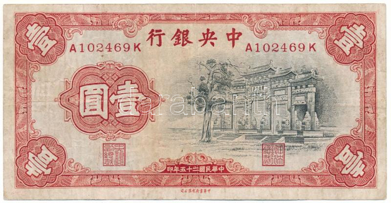 Kína 1936. 1Y "Central Bank of China" "A 102469 K" T:F
