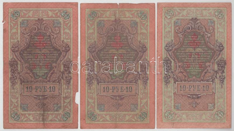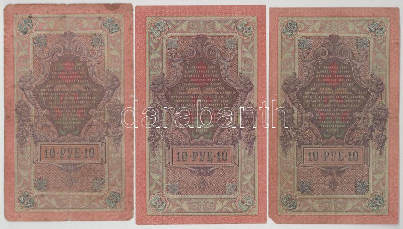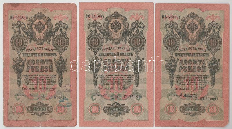 Orosz Birodalom 1909. 10R (6db, 5x különféle pénztáros aláírással) Szign.: Shipov (Az állami bank igazgatója) T:VG, egyik F