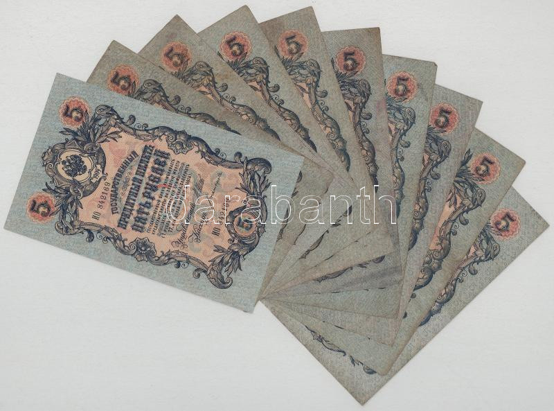 Orosz Birodalom 1909. 5R (10db 9x különféle pénztáros aláírással) Szign.:Shipov (Az állami bank igazgatója) T:XF-VG