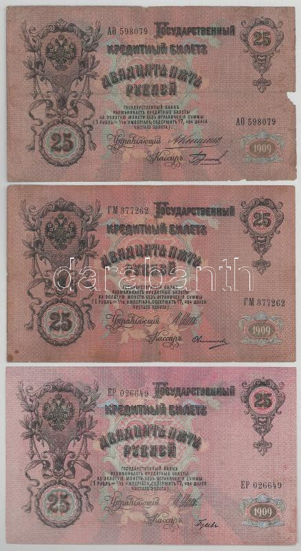 Russian Empire 1914-1918(1909) 25 Roubles Sign.: Shipov (3xklf) C:F-VG,G