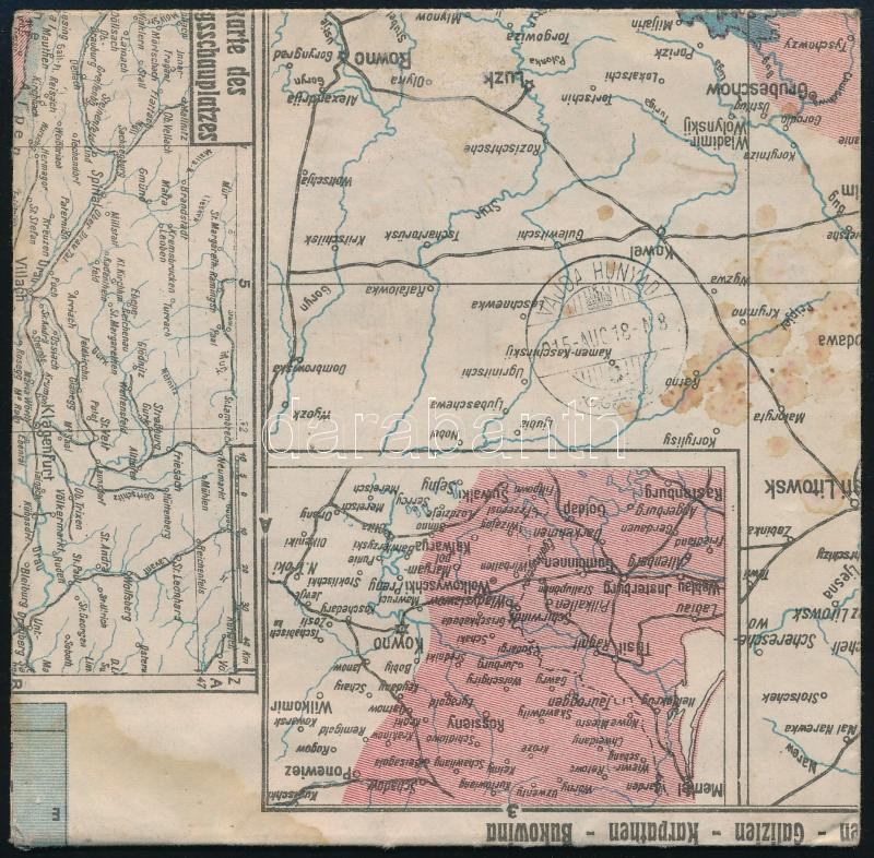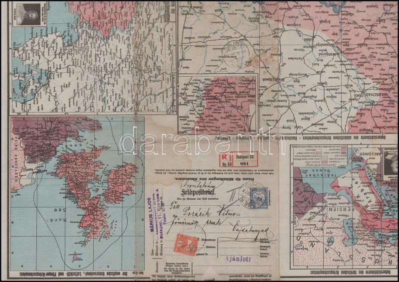 1915 Térképből készített ajánlott nyomtatvány Budapestről Vajdahunyadra küldve 28f bérmentesítéssel