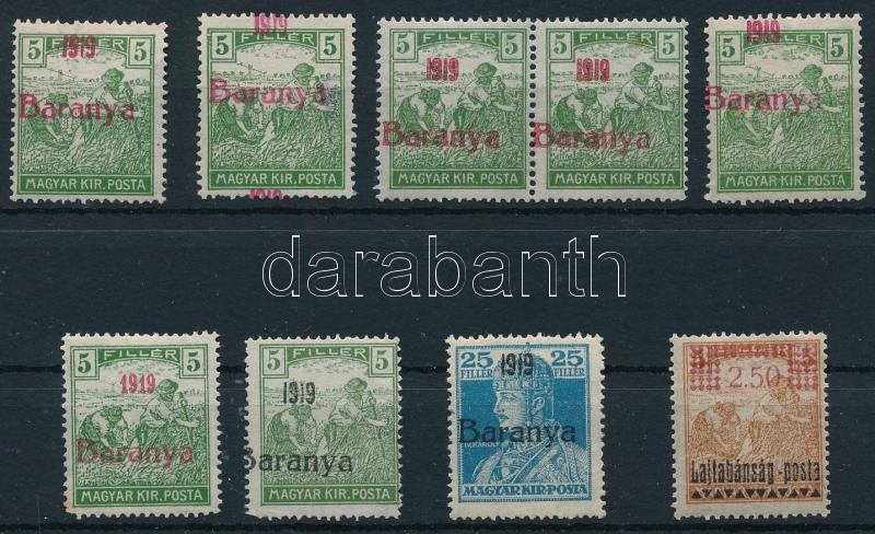 Baranya 1919 9 db bélyeg, Bodor vizsgálójellel