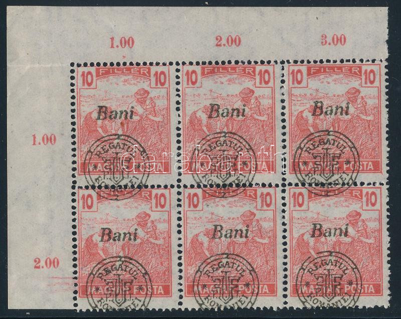 Nagyvárad 1919 Magyar Posta 10f ívsarki 6-os tömb eltolódott felülnyomással, Bodor vizsgálójellel