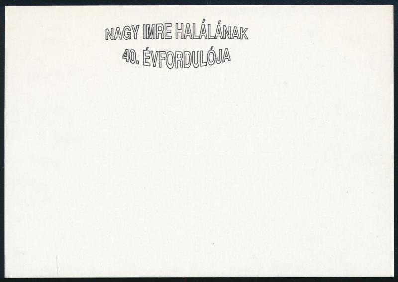 1998 Nagy Imre halálának 40. évfordulója emlékív fekete felülnyomatának próbanyomata kartonpapíron, tanúsítvánnyal