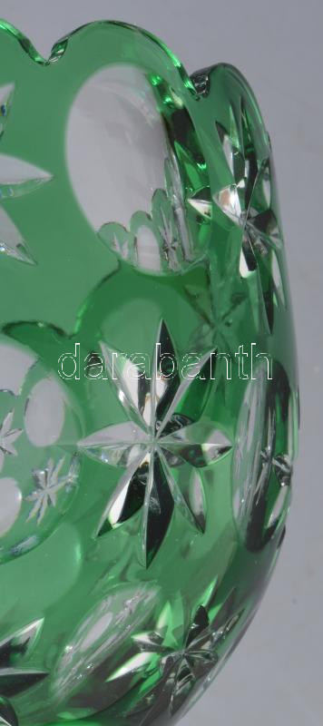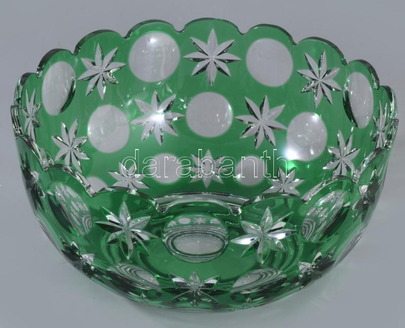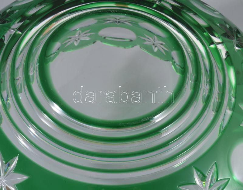 Zölden pácolt ólomkristály asztalközép kínáló, hibátlan, d: 22 cm