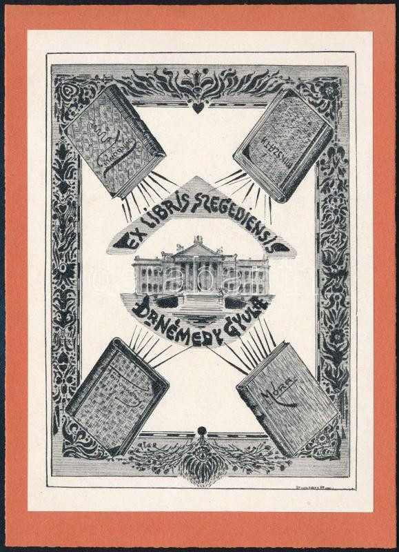 Scultéty Rezső (működött 1920-40 körül): Ex libris Szegediensis Dr. Né... https://www.darabanth.com/de/516-Gemalde-Plakat-ex-libris-Auktion/519.0/Gemalde-und-Grafiken/Ex-libris-Kleingrafik~2/Scultety-Rezso-mukodott-1920-40-korul-Ex-libris-Szegediensis-Dr-Nemedy-Gyula-1934~II3502875