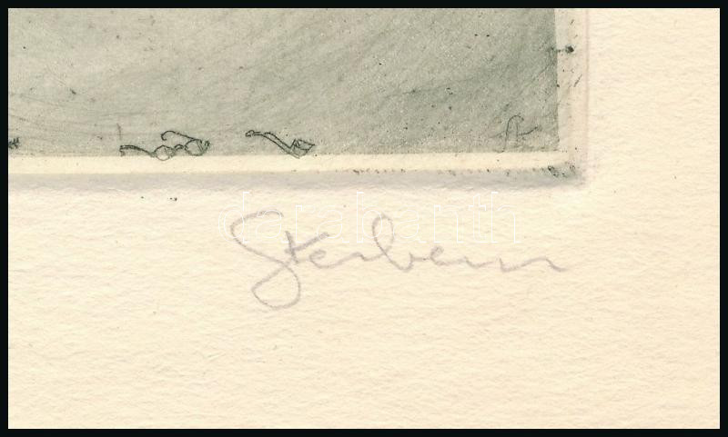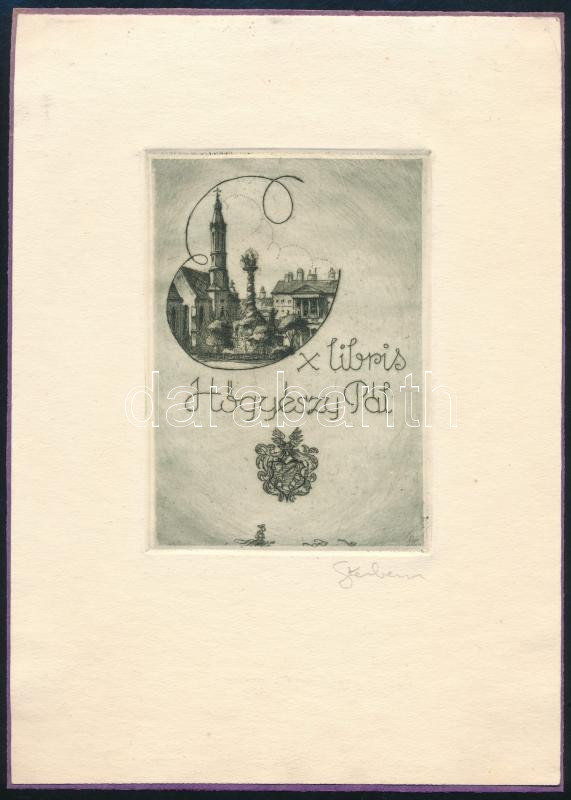Sterbenz Károly (1901-1993): Ex libris Hőgyészy Pál. Rézmetszet, papír, jelzett, lap teteje papírra kasírozva, 11×8 cm