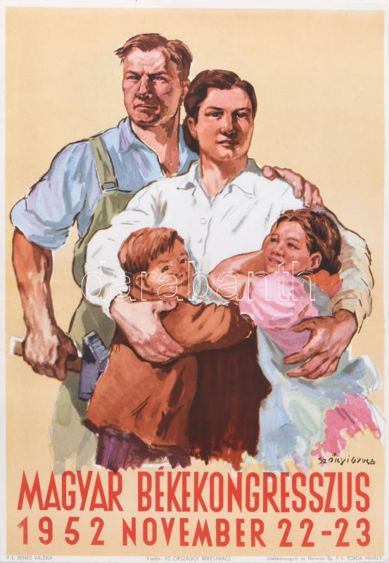 1952 Magyar Békekongresszus plakátja, Szőnyi Gyula grafikája, 39×28 cm https://www.darabanth.com/de/516-Gemalde-Plakat-ex-libris-Auktion/519.0/Gemalde-und-Grafiken/Plakat~3/1952-Magyar-Bekekongresszus-plakatja-Szonyi-Gyula-grafikaja-39x28-cm~II3496134