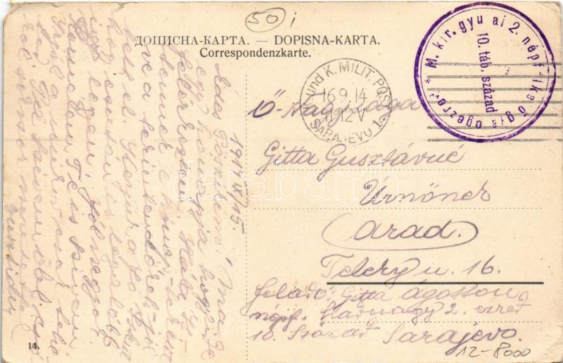 1914 Sarajevo, Israeliticki hram / Israelitischer Tempel / synagogue + "M. kir. gyulai 2. népfölkelő gyalogezred 10. táb. század" (EM)