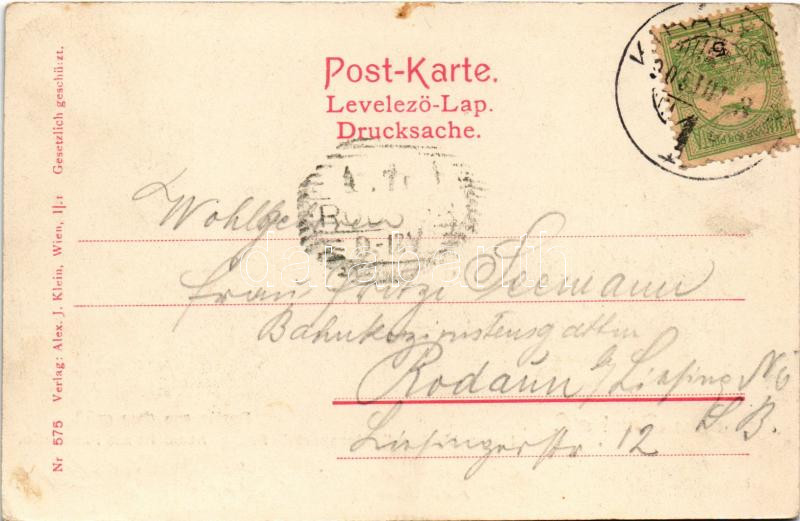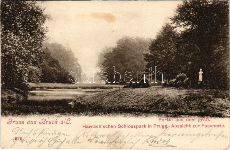 1905 Lajtabruck, Bruck an der Leitha; Partie aus dem gräfl. Harrach'schen Schlosspark in Prugg. Aussicht zur Fasanerie / Harrach (Prugg) kastély kertje. Alex J. Klein kiadása / castle park (fl)