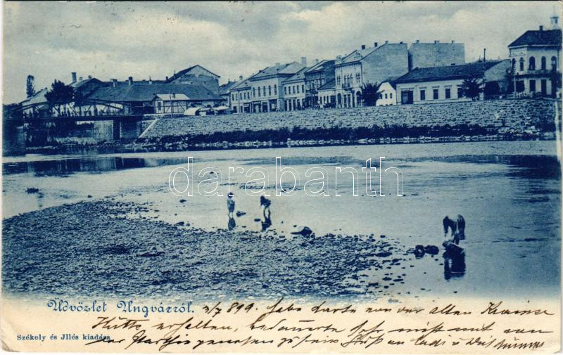 1899 Ungvár, Uzshorod, Uzhhorod, Uzhorod; híd, Ung partja. Székely és Illés kiadása / bridge, Uzh riverside (EK)