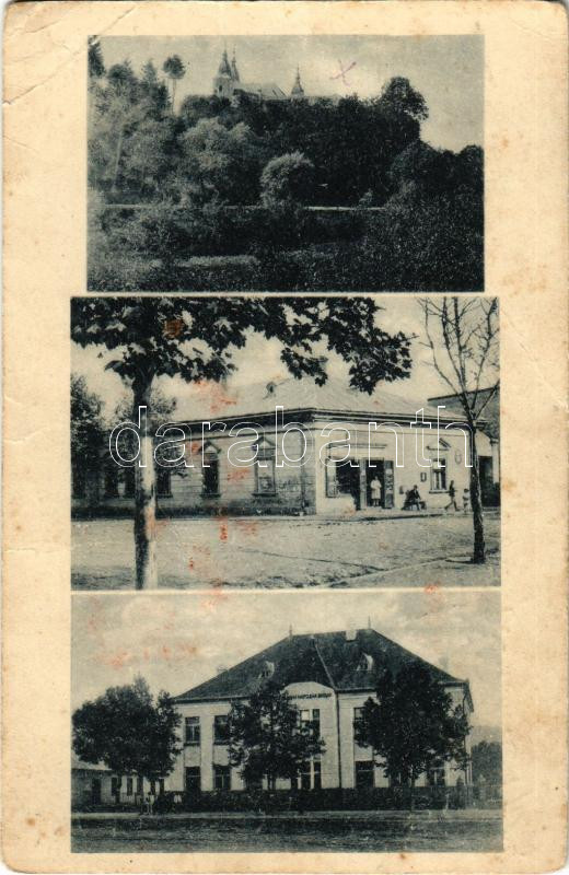 1939 Nagyberezna, Velykyi Bereznyi, Velky Berezny; látkép, üzlet, iskola. Josef Borsos kiadása / general view, shop, school (szakadás / tear)