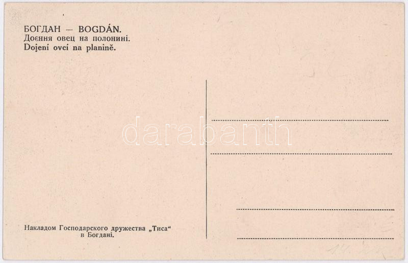 Tiszabogdány, Bogdán, Bohdan; Dojeni ovcí na planine / Juhok fejése a tisztáson / farmers milking the sheep (EK)