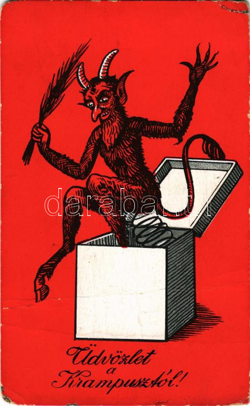 Üdvözlet a Krampusztól! / Krampus art postcard (fa)