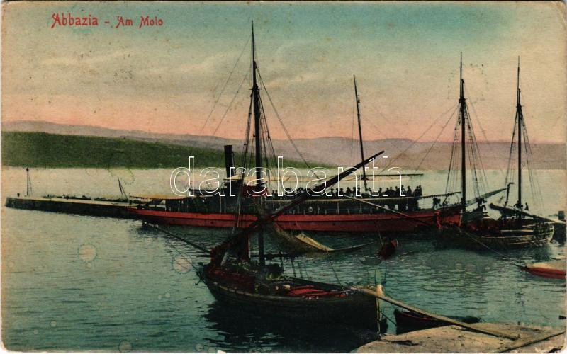 1909 Abbazia, Opatija; Am Molo / kikötő, gőzhajó / port, steamship (EK)