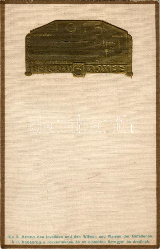 1915 Belgrad, Die 3. Armee den Invaliden und den Witwen und Walsen der Gefallenen / hadisegély képeslap / WWI Viribus Unitis propaganda, charity Emb. (EK)