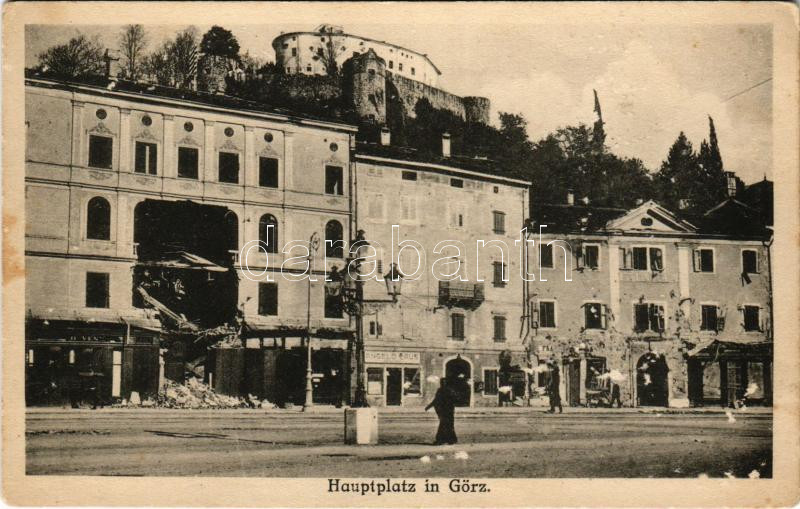 Gorizia, Görz; Hauptplatz / WWI K.u.k. military, ruined houses after battle (EK)