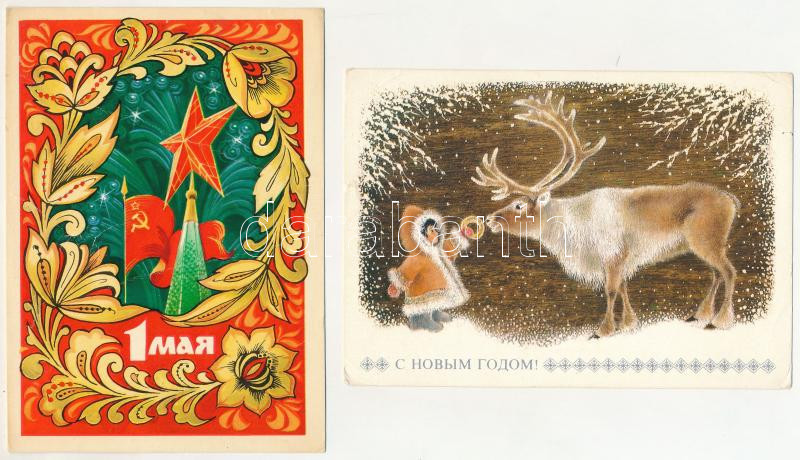 12 db MODERN motívum képeslap: szovjet szocreál üdvözlőlap / 12 modern motive postcards: Soviet greetings