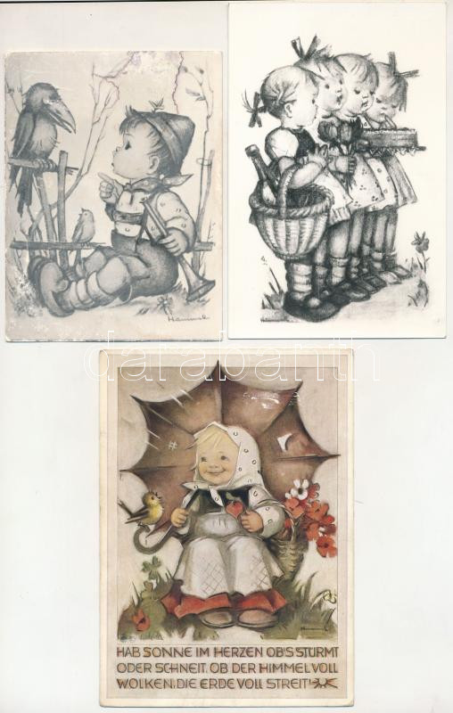 9 db MODERN Hummel művész képeslap gyerekekkel / 9 modern art postcards with children, signed by Hummel