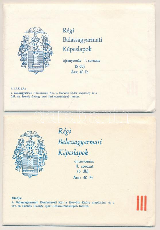 Régi Balassagyarmati Képeslapok - 2x5 db MODERN reprint képeslap eredeti borítékban, újranyomás, I-II. sorozat. Kiadja a Balassagyarmati Honismereti Kör