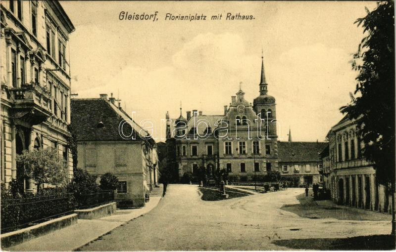 Gleisdorf (Steiermark), Florianiplatz mit Rathaus. Verlag Karl Haas / square, town hall (Rb)