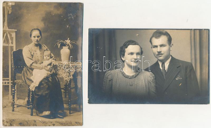 4 db RÉGI fotós képeslap: műtermi felvételek / 4 pre-1945 family photo postcards