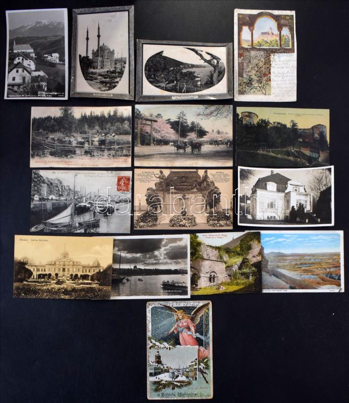 Külföldi városok, tájak: 750 db régi képeslap, változatos anyag cipős dobozban