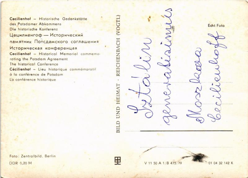 Potsdam, Cecilienhof; Historische Gedänkstätte des Potsdamer Abkommens, Konferenz / Historic memorial of the Potsdam Agreement Conference; Clement Attlee, Ernest Bevin, Vyacheslav Mikhailovich Molotov, Joseph Stalin, William D. Leahy, Joseph E. Davies, James F. Byrnes, and Harry S. Truman - MODERN (gyűrődések / creases)