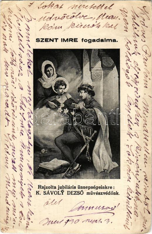 Szent Imre fogadalma. Emléklap, Országos Szent Gellért Egyesület kiadása s: K. Sávoly Dezső (kis szakadás / small tear)