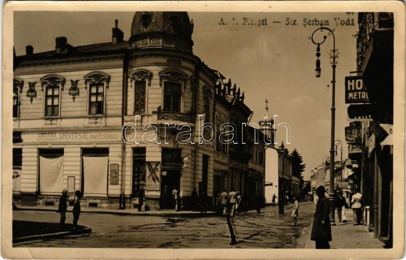 1941 Pitesti, Str. Serban Voda, Libreria Universal Ioan Staicu, Hotel Metro / street, shops, hotel. photo (fl)