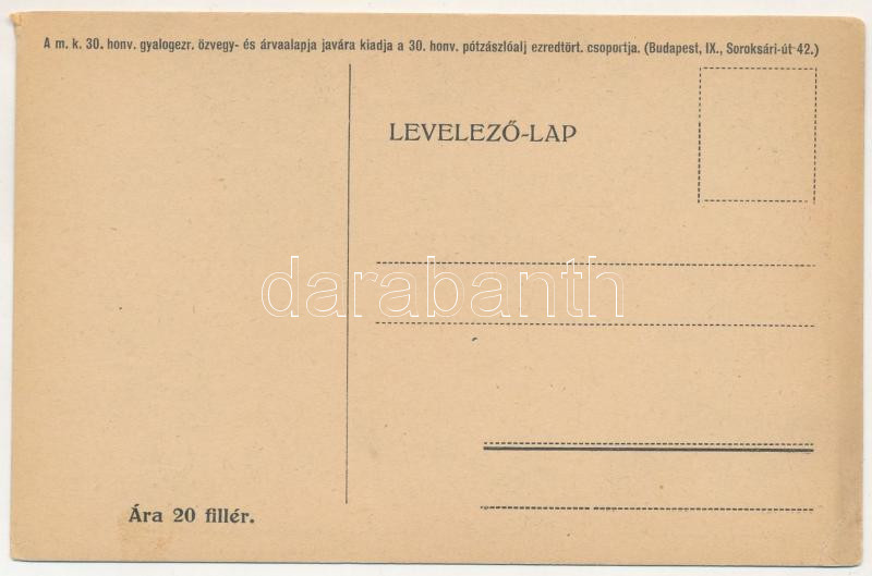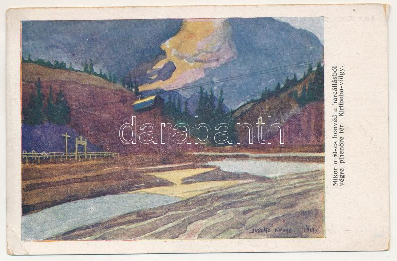 Carlibaba, Kirlibaba, Radnalajosfalva (Bukovina, Bucovina); Mikor a 30-as honvéd a harcállásból végre pihenőre tér. A m. k. 30. honv. gyalogezr. özvegy- és árvaalapja javára kiadja a 30. honv. pótzászlóalj ezredtört. csoportja / WWI K.u.k. military art postcard s: Juszkó hdngy (EB)