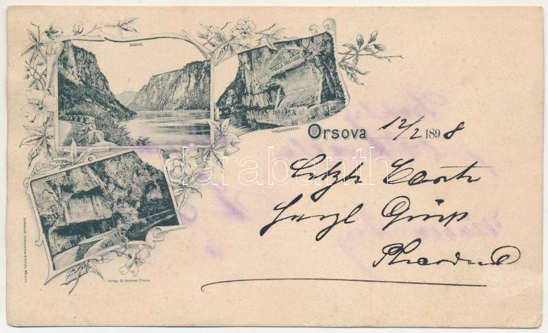 1898 Orsova, Kazán-szoros, Széchenyi és Traján emléktábla / Cazane / gorge, monuments. Lichtdruck Kretzschmar & Schatz Art Nouveau, floral (r)
