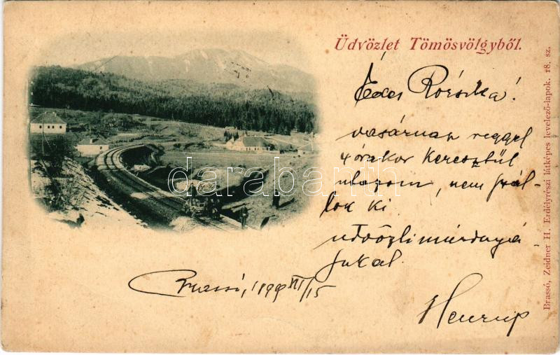 1899 Tömösvölgy (Brassó, Kronstadt, Brasov); vasút, hajtány. Zeidner H. Erdélyrészi látképes levelezőlapok 18. sz. / Tampa valley, railway, handcar + "BRASSÓ - BUDAPEST 16. SZ." vasúti mozgóposta bélyegző (fl)