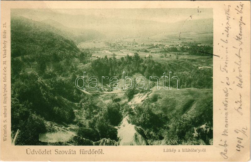 1901 Szováta, Szovátafürdő, Sovata; Látkép a kilátóhelyről. Weinrich S. udvari fényképész felvétele / lake, bathing people, bathers (EB)