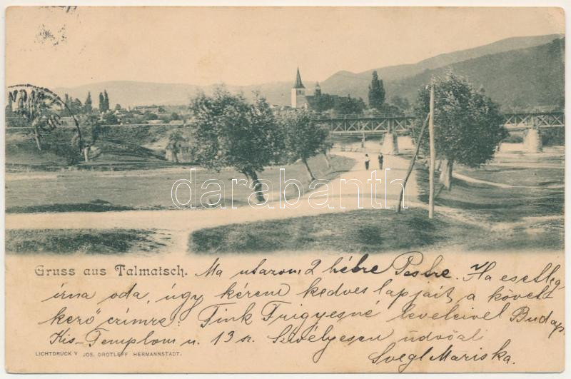1902 Nagytalmács, Talmács, Talmaciu, Talmatsch (Szeben); vasúti híd. Drotleff Jos. fénynyomása / railway bridge (fl)