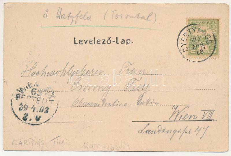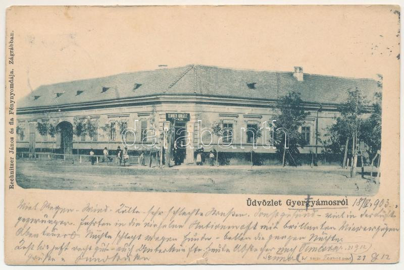 1903 Gyertyámos, Gyergyámos, Gertianosch, Gertiamos, Carpinis (Banat); Tenner Ignác üzlete. Rechnitzer János és fia fénynyomdája kiadása Zágrábban / shop of Tenner (EM)