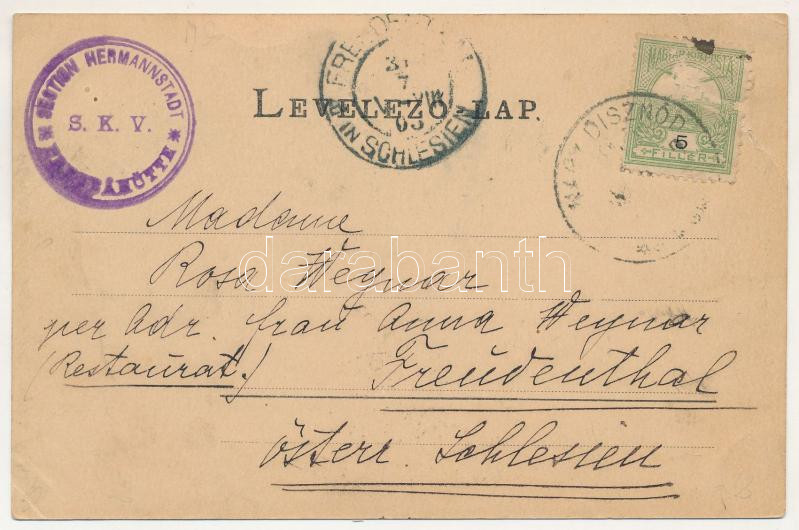 1903 Szebenjuharos, Hohe Rinne, Paltinis; Grüss aus den Siebenbürgischen Karpathen! Negoi-Schutzhütten, Kurhaus auf der Hohen Rinne (Paltinis), Bullea-Schutzhütte, Presbe-Schutz, Drachensteig. Siebenbürgischer Karpathenverein Section Hermannstadt / Üdvözlet az Erdélyi Kárpátokból! Szebenjuharos, Negoj, Bólya menedékházak, gyógyházak. Az Erdélyi Kárpát Egyesület Nagyszebeni részlegének kiadása / spa, rest houses, mountain huts in the Transylvanian Carpathians. Art Nouveau, floral (szakadás / tear)