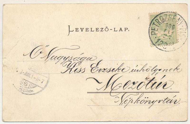 1906 Petrozsény, Petrosani; Pályaudvar, vasútállomás, fűtőház, szénbánya. Grausam Károly kiadása / railway station, coal mine + "PETROZSÉNY - PISKI" vasúti mozgóposta bélyegző (EB)