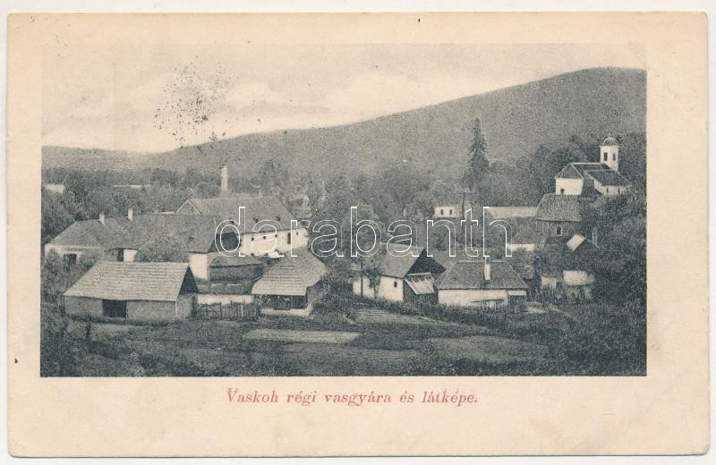 1906 Vaskoh, Vaskóh, Coh, Vascau; régi vasgyár és látkép. Miklóssy József kiadása / general view with old iron factory (Rb)